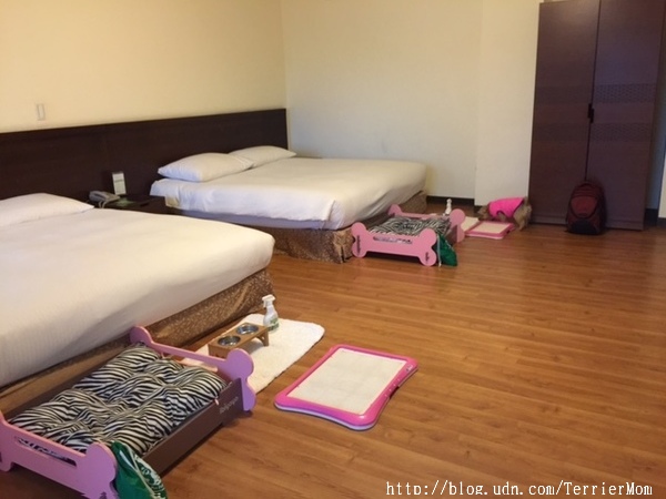 入住後發現房間雖然舊,但該用的東西都準備好了。我們家兩隻狗各有狗床,狗碗,消毒的清潔劑,狗尿布,還有狗狗旅行用品袋,裡面有小包的狗飼料,狗罐頭,還有撿大便的垃圾袋等等,非常貼心。
