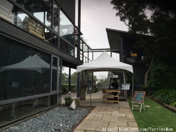 隔天中午我們在回台北的路上又找了一家可以帶狗狗去的餐廳。一進去就看到兩棟房子,左邊這棟是平常的用餐區,右邊那棟是帶狗一起的用餐區。
