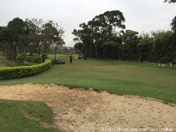 不過最吸引我們的地方是它的大草地,可以讓狗狗跑跑。我們看到很多沙坑,所以這個餐廳應該是高爾夫球場改建的。我們原本希望坐在戶外吃東西,這樣狗狗可以在草地上跑,不用局限坐在椅子上,但是他們戶外不開放用餐。