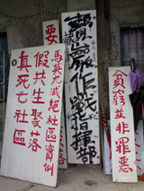 處處都是寫滿了抗議的招牌 抗議著市政府侵吞民宅之類的話