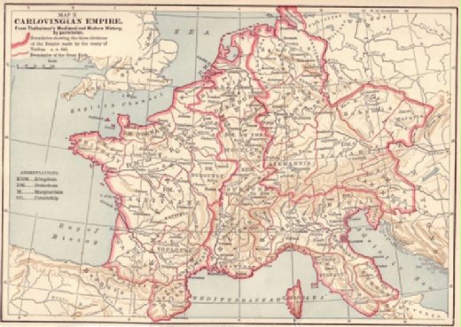Ø 西元843年,法蘭克王國查理曼大帝(Charlemagne)的三個孫子,簽署《凡爾登條約》(Treaty of Verdun),共同瓜分整個法蘭克王國。