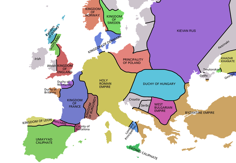-----東法蘭克王國,9~12世紀演變成為日後的德國或神聖羅馬帝國。