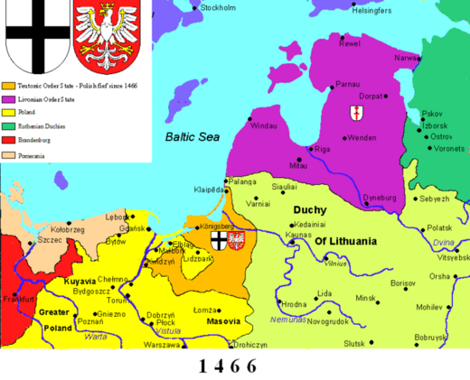 下下圖 : 1466年教宗統轄的條頓騎士團國家衰亡前領土圖