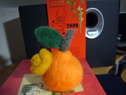 「大吉大利的橘子+黃金萬兩元寶一錠+用財(柴)犬幫您送進門!」這可是雙手牌-小猴老師的創意,本人只是借用一下,哈哈!像不像三分樣,心意最重要囉!! 恭喜恭喜大家......
