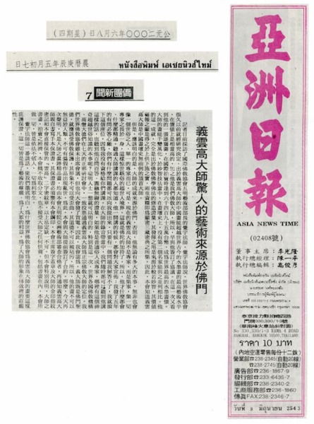 4.【義雲高大師 系列新聞報導】-2000年06月08日– 義雲高大師驚人的藝術來源於佛門 (亞洲日報 公元二○○○年六月八日 星期四)
