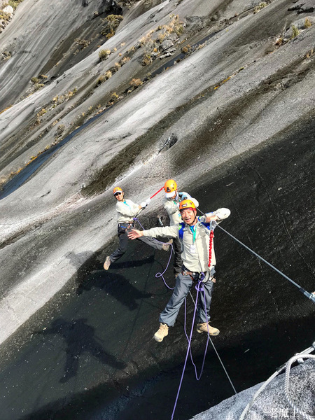 我們第二組卡在發哥, 但在我不斷逼迫下, 他終於弄熟程序, 最後總算能夠俐落地套繩索,解繩索,然後前進. (他一定有感受到我鷹隼般的盯視, 哈哈哈!)