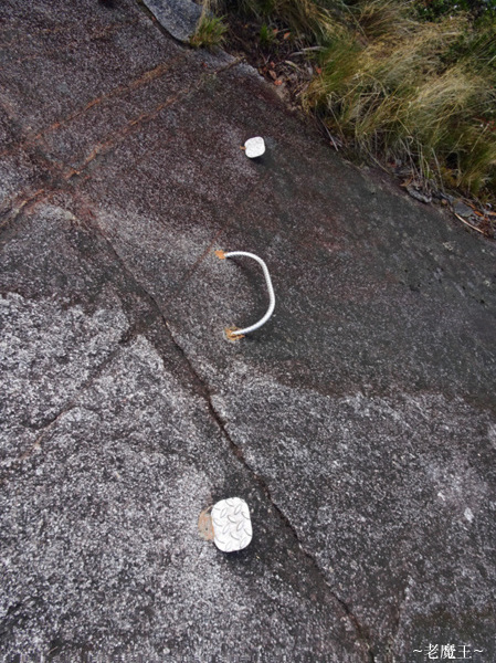 不過, 昨天的解說員有講過, 反正就是沿著地上繩索走就對了, 所以大家倒是不驚慌, 順著地上繩索, 跨大腳步在岩石上邁進.