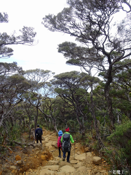 神山的第二高峰是南峰, 據說兩年前一場大地震, 把祂弄矮了一點, 變得更陡峭, 所以如今已經不開放登頂了. 從這兒看過去, 連綿的高峰下就是平原, 感覺落差極大. 後來問地陪 Victor, 他說沙巴第二高的山, 只有兩千多公尺! 神山之所以神, 還跟 "鶴立雞群" 有關呢!