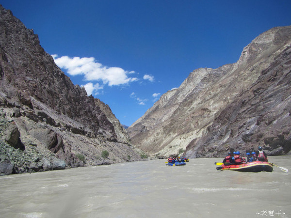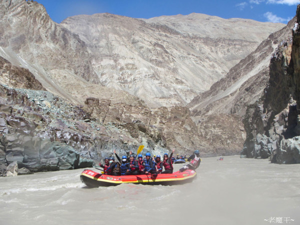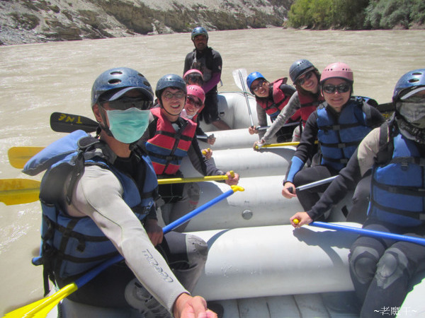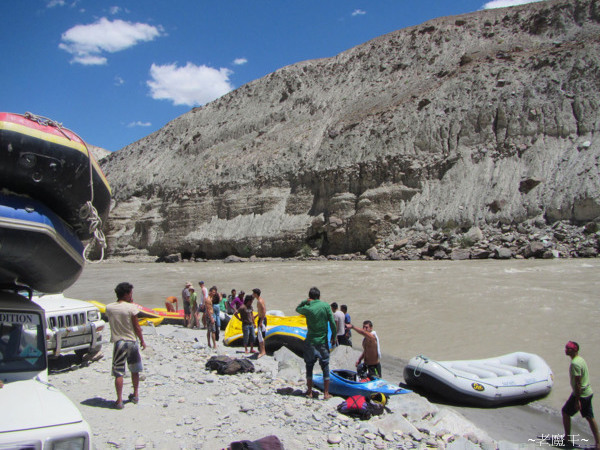 拉達克這兒雖是偏僻山區, 但旅遊活動除了登山健行之外, 還有坐吉普車在陡峭的山路顛簸彈奔, 以及在冰冷的高山溪水上泛舟, 算是地盡其利呀!