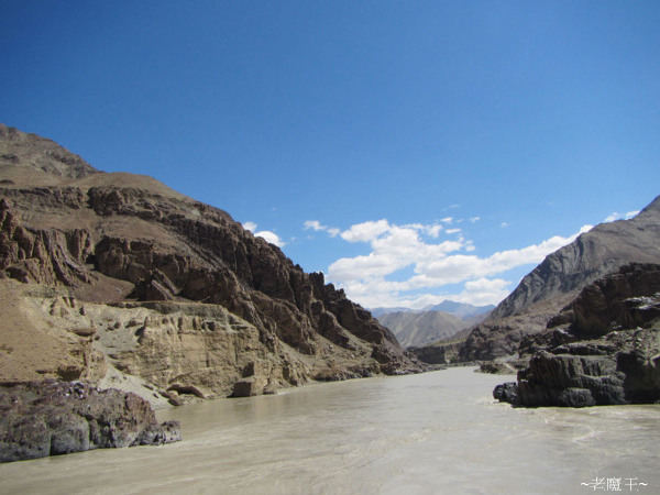 此河谷會進入一座國家公園 (Hemis national park), 但夾岸兩山, 俱顯貧瘠; 中流滔滔, 卻是泥沙! 我心想, 難不成今天是要在這種混濁的溪流中泛舟?