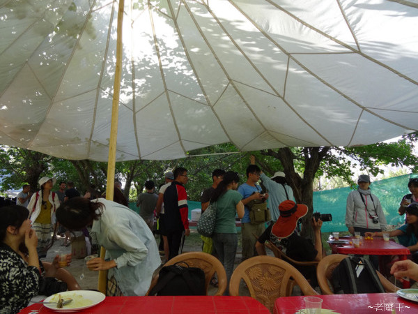 大夥兒顛簸於石頭路上, 依舊是各自聊天說笑, 不以為意. 思賢說他去年來的時候, 幾乎全部都是石頭路, 今年已經改善許多, 至少前面一大段是柏油路了. 才沒說多久, 車子就停下來.