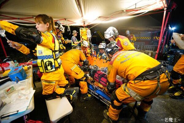 突然, 昱愷傳來簡訊, 說他需要追加某些針劑. 原來救出來的兒子, 有壓砸傷合併高血鉀. 我跟尚汶把針劑準備好, 請後勤組的家興幫我們把藥送過去 (因為我們倆要做體檢了, 不能離開). 其他搜二的夥伴陸續起床, 著好裝來醫療站做體檢. (此時搜一的醫療組正在和死神搏鬥)