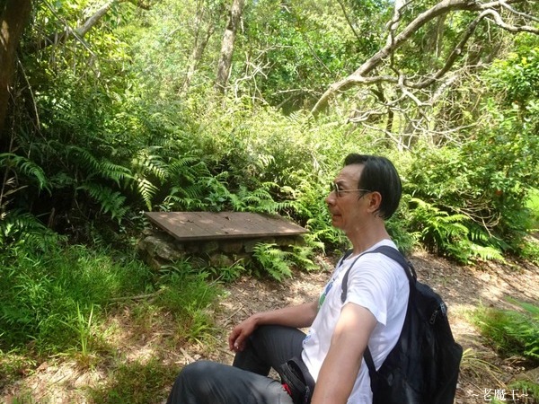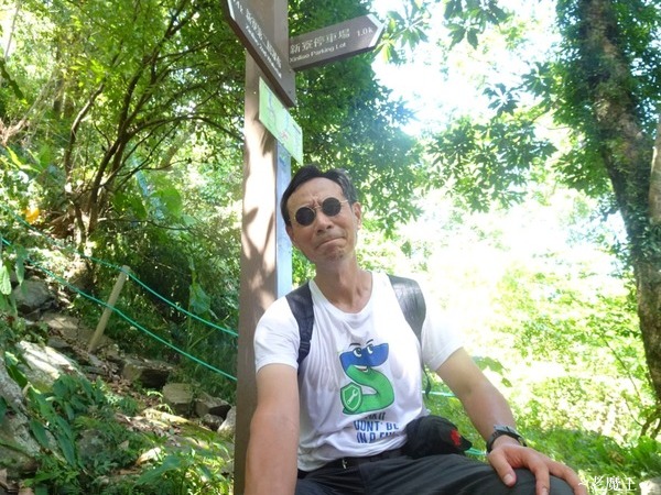 這一段坡道真的很陡, 我居然每走 100 公尺左右, 就忍不住要休息一下. 雖然大多數是走在樹蔭下, 但途中幾乎沒有風, 所以走不到 300 公尺, 我就已經汗流浹背, 衣服濕透了. (今天沒有穿排汗衣)
