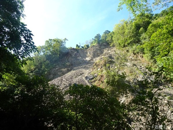今天天氣很好, 好到有點兒誇張, 簡直是熱爆了, 居然已經 34C! 走進去不到 200 公尺, 便看到對面坍方的山壁.