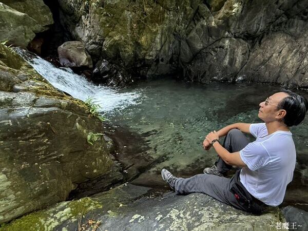 我們在瀑布下的溪邊, 洗手洗臉, 知道等會兒要開始挑戰大魔王了.