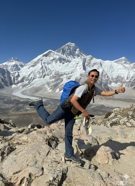 我哈哈大笑, 大呼自嘲 "我攀上聖母峰啦!" 有趣的是, 後來彥蓉學妹還把我這張照片做成動畫, 變成我在聖母峰前跳躍起來, 好好玩.