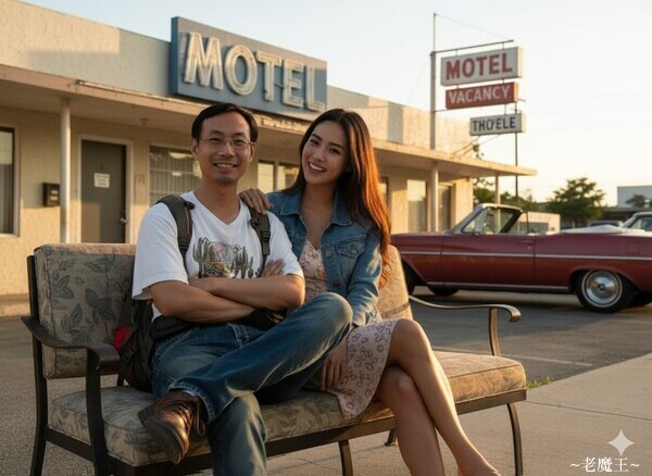 死鬼意猶未竟, 竟然把我另一張照片惡搞, 變成我和一位美女在汽車旅館偷情, 呵呵.