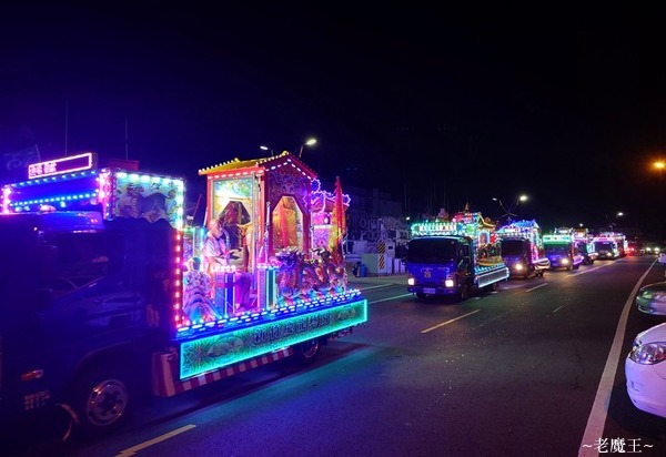 原以為接下來就是直接回到南方澳的進安宮, 讓媽祖休息了; 沒想到還要繞南方澳大橋, 過豆腐岬以及南方澳兩座漁港. 此時天色已暗, 宮廟車隊突然都亮起霓虹燈, 變身為電子花車啦!