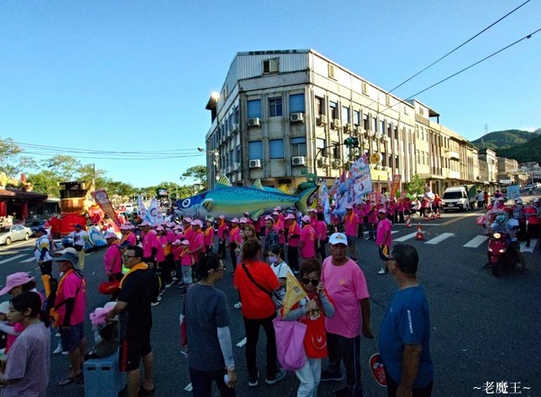 今年的主題是 "雙媽會", 除了南方澳進安宮的珊瑚媽祖之外, 雲林西螺福興宮的太平媽祖也來共襄盛舉 (聽說西螺來了將近 700 人, 陣容強大, 差點兒蓋過主場), 而且還有主題曲, 沿途一直聽到廣播唱著 "西螺ㄟ太平媽~~" . 兩位媽祖形成姐妹會, 很有意思. 我笑說 "啊媽祖不是同一個人, 怎麼把她分裂成姊妹啊?" 講完就被其他同事翻白眼罵我沒禮貌, 嘻嘻!