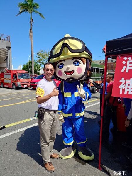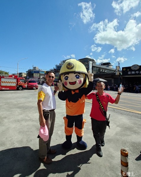消防局有兩套絨布的消防寶寶服裝, 雖然很可愛, 可是在這種天氣下, 對裡面的隊員簡直是酷刑呀! 我笑著問育荃 "你是猜拳輸了, 還是去年考績不好, 才被抓來穿這衣服?" 育荃說他是直接被指派的, 呵呵!