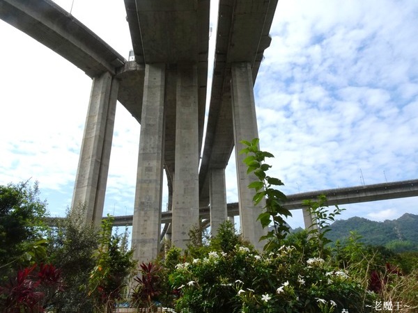 當初蓋好 6 號國道, 發現挑高極佳 (最高有 70 公尺, 比 5 號國道的 65.5 公尺還高), 加上交流道的路線進出, 69 根墩柱支撐, 竟形成了所謂的 "雲端公路" 造景.