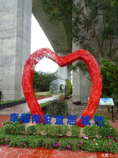 南投縣政府將交流道下規畫成一座小公園, 種植不少鮮花香草. 沿著高速公路下的這座線形公園, 成了另類休閒兼運動的好地方.
