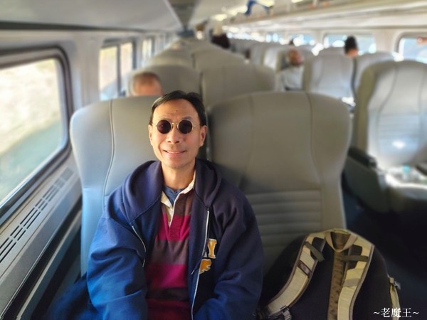火車相當乾淨, 速度也快, 我用手機裡的 "神盾" 來看. 最高速可以來到時速 202公里, 平均時速在 180 Km/hr. 車掌先生過了快半小時, 才開始查票; 確認車票後, 會在我們座位上的行李架旁邊掛一張牌子, 以示查驗過.