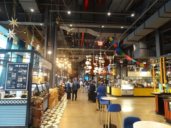 兩座橋看起來彼此很近, 其實入口卻有一段距離. 我們按照地圖指引, 走在 Time out market 這一區, 發現裡面有好多家餐廳, 而且, 意外看到這個 "常常在電影看到的畫面".