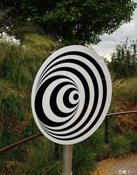 步道上有一些藝術裝置, 其中這個不對稱平板很有趣, 利用視覺效果, 讓人以為它是一個旋轉的圓錐體 (其實完全是平面圖案).