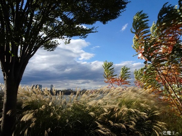 島上有好多植物, 看得出來是經過細心設計和栽培的; 秋芒和甜根子在夕陽下, 顯得好浪漫.
