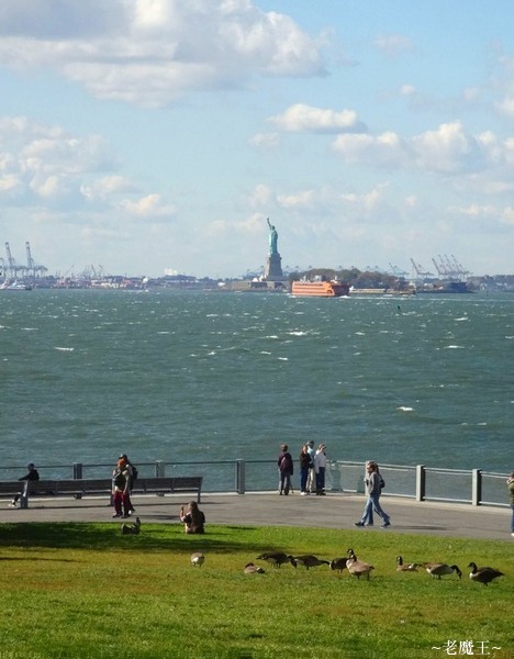 這座小公園非常幽靜, 除了有乾淨的公廁之外, 還可看向曼哈頓區的林立高樓, 甚至從這個角度, 依舊可看到自由女神像.