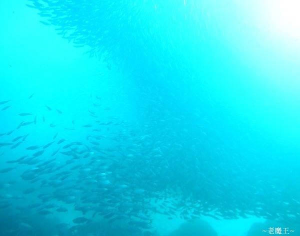 我想近拍看看沙丁魚的模樣, 但畫面偏模糊, 唉!