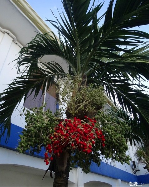 早上起床, 天氣好美麗, 渡假村的椰棗結好多果實. 到了餐廳, 居然聽說 "政府今天只開放岸潛, 還是不能船潛."