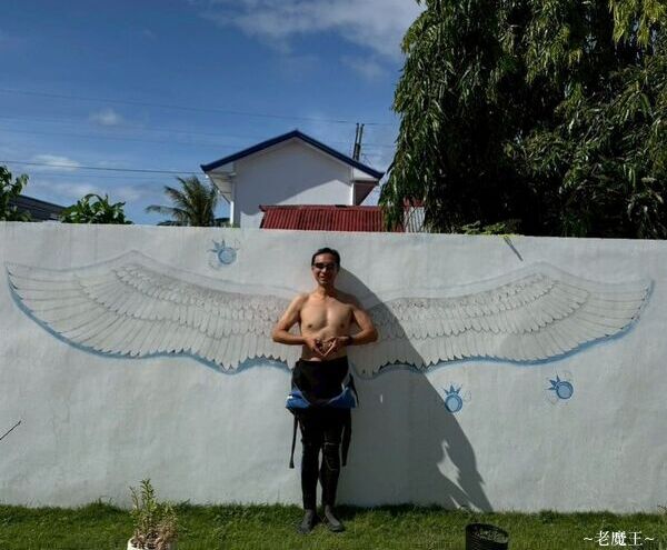 渡假村的一面牆上畫了兩隻翅膀, 不來拍照就對不起經理的苦心囉!
