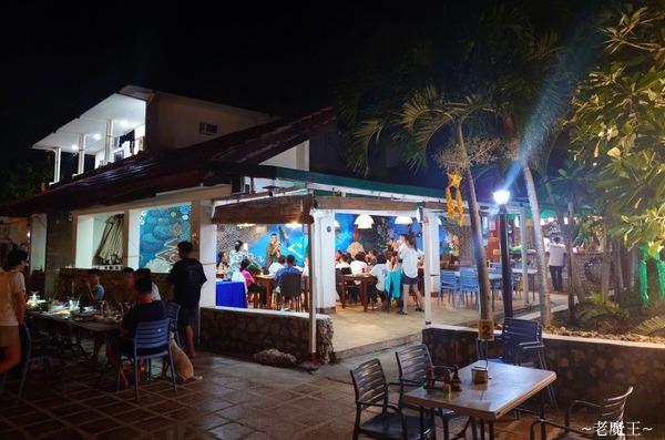 大家漫步過去, 到 Chili bar 這家餐廳前, 著裝下水. 今天是星期六, 海邊突然多了好多人, 浮潛和深潛都有, 一時之間, 感受到這個渡假小漁村的觀光魅力.