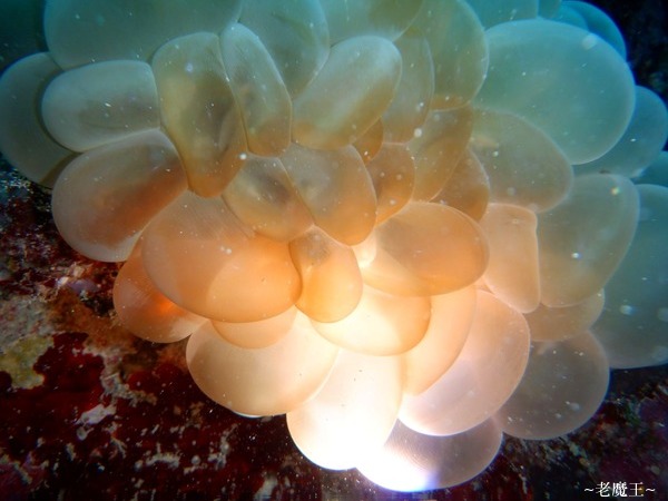 我沒有碳棒, 無法在泡泡珊瑚裡翻出共生蝦, 只好玩玩打光遊戲, 把燈放在珊瑚下來拍照; 本以為或許可以看到蝦子的剪影, 但顯然是想太多了.