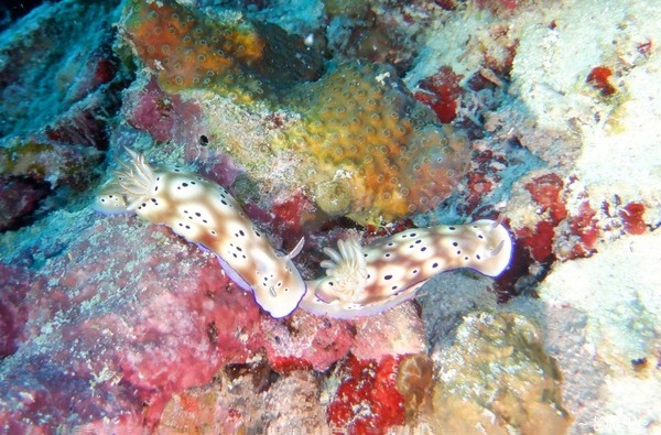 兩隻多彩科的海蛞蝓, 似乎正準備要嘿咻嘿咻.