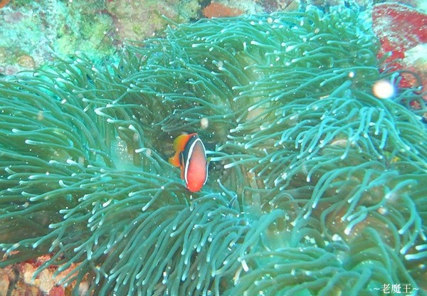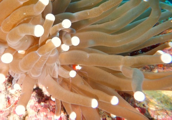 這隻海葵蝦, Alex 努力想把牠指出來, 可惜我沒拍清楚, 只隱約看到牠的頭和腳.