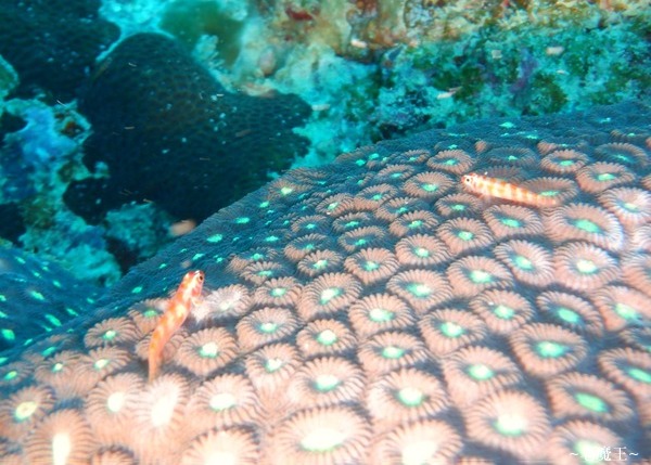 看到珊瑚上的蝦虎, 拍完照後, 發現上面總共有 4 隻.