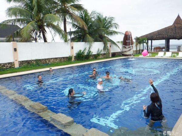 但對其他積極喜歡潛水的夥伴們而言, 來菲律賓一趟卻不能潛水, 是很浪費的. 因此, 小妤開始徵求大家的意願, 要排什麼活動? 在大家討論之後, 最後決定 "到游泳池玩橄欖球"!