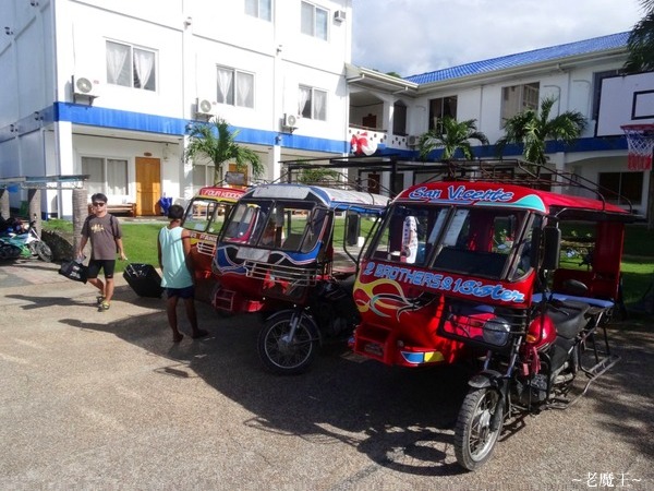 這嘟嘟車比我 10 年前的還大了一點, 可以坐到 5 個人, 但我們 3 或 4 個一輛, 比較不擠, 說好來回一輛 400 peso.