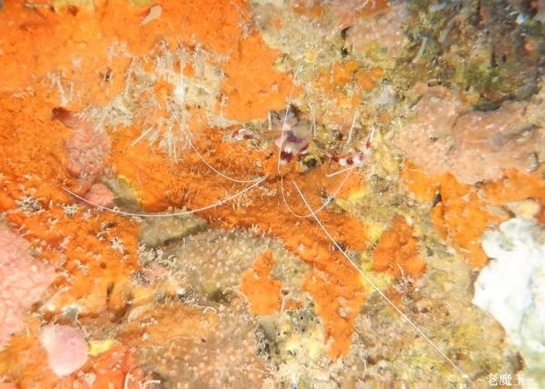 躲在岩洞中的櫻花蝦.