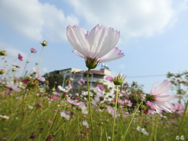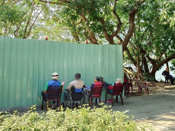 有一區還在施工整建, 地方上的老人, 聊天時, 居然不是面對面, 而是把腳翹在工地牆上, 好有趣喔, 聊天時可以順便抬腿, 一兼二顧哪!