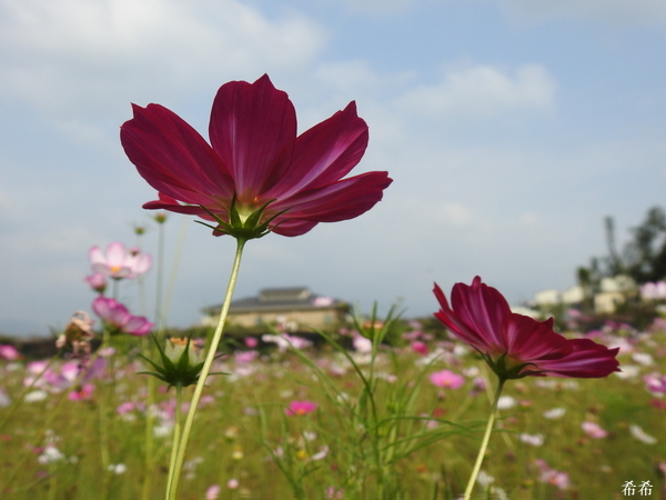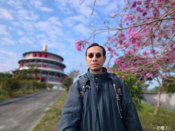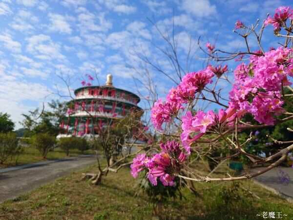外面種了幾株盛開的洋紅風鈴木, 整體景觀乍看之下, 很像淡水的天元宮.