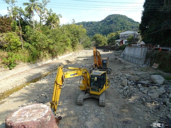 接下來順著指標, 來到 "黃蝶翠谷", 這是我從小就聽過的景觀名稱, 但來到雙溪溪谷, 只看到零星的幾隻黃粉蝶. 河床乾枯, 還有挖土機停在這兒, 不知道是要重整這一塊溪谷, 還是準備來盜採砂石!?
