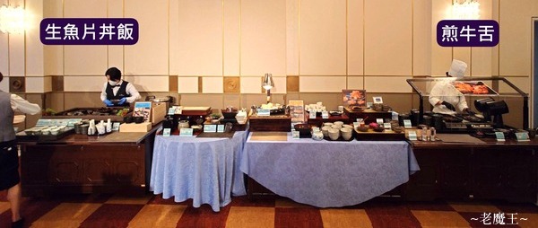 早餐非常豐盛, 竟然就有煎牛舌和生魚片丼飯! (昨晚小牛在居酒屋吃到的鰻魚丼飯, 居然是煮熟的, 害他很失望)