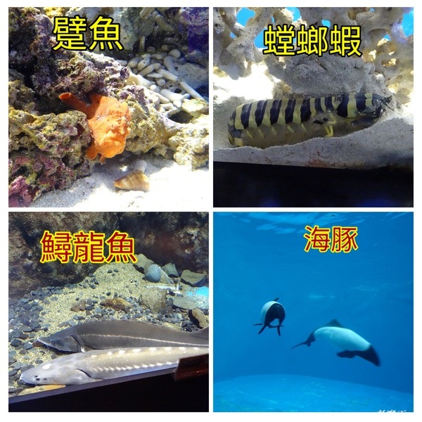 這兒的石狗公和躄魚, 被洗得很乾淨; 不像我在海裡看到的, 都是烏漆嘛黑一副髒兮兮的樣子. 螳螂蝦和海豚的品種也都很特別.