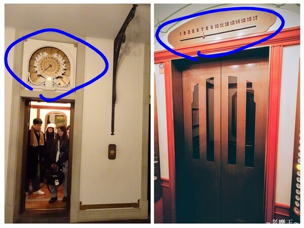 電梯是很古典的型式, 樓層的顯示不是電腦面板, 而是一種指針, 好可愛. 我笑說 "就只差沒有一道鐵柵門在前面了."