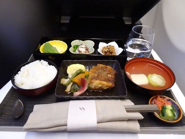 回程的餐點, 主餐我選了比目魚, 還滿好吃的, 副菜則普通.