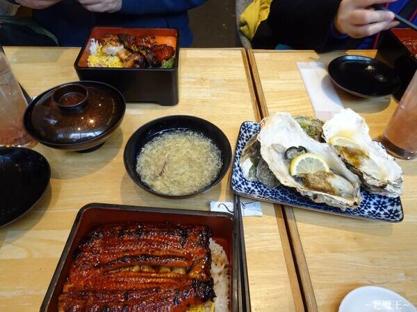 我們一路逛回去, 只有文華買了草莓大福; 來到 Montbell 店, 本來 Elton 想買保暖式耳罩, 但他們賣太貴了, 最後只好放棄. 大家齊聚鰻魚飯小館, 因為位置太小而分坐兩桌.